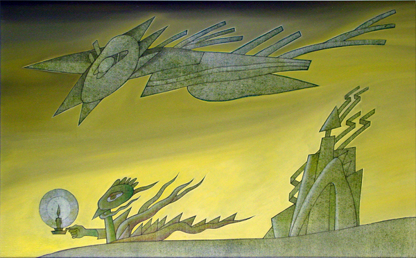 os pássaros de pedra, pintura em acrílico de Costa Brites).